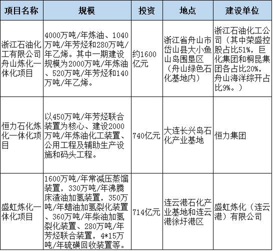 近年来,荣盛、桐昆、恒力、盛虹等聚酯行业大佬在横向发展聚酯新项目的同时,也纷纷向上游炼化一体化进军,其中,浙江石化(荣盛、桐昆)、恒力、盛虹三大炼化一体化项目备受业界关注。